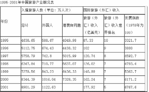 D.1995——2001年,我国的国际旅游外汇收入总值超过了1000亿美元